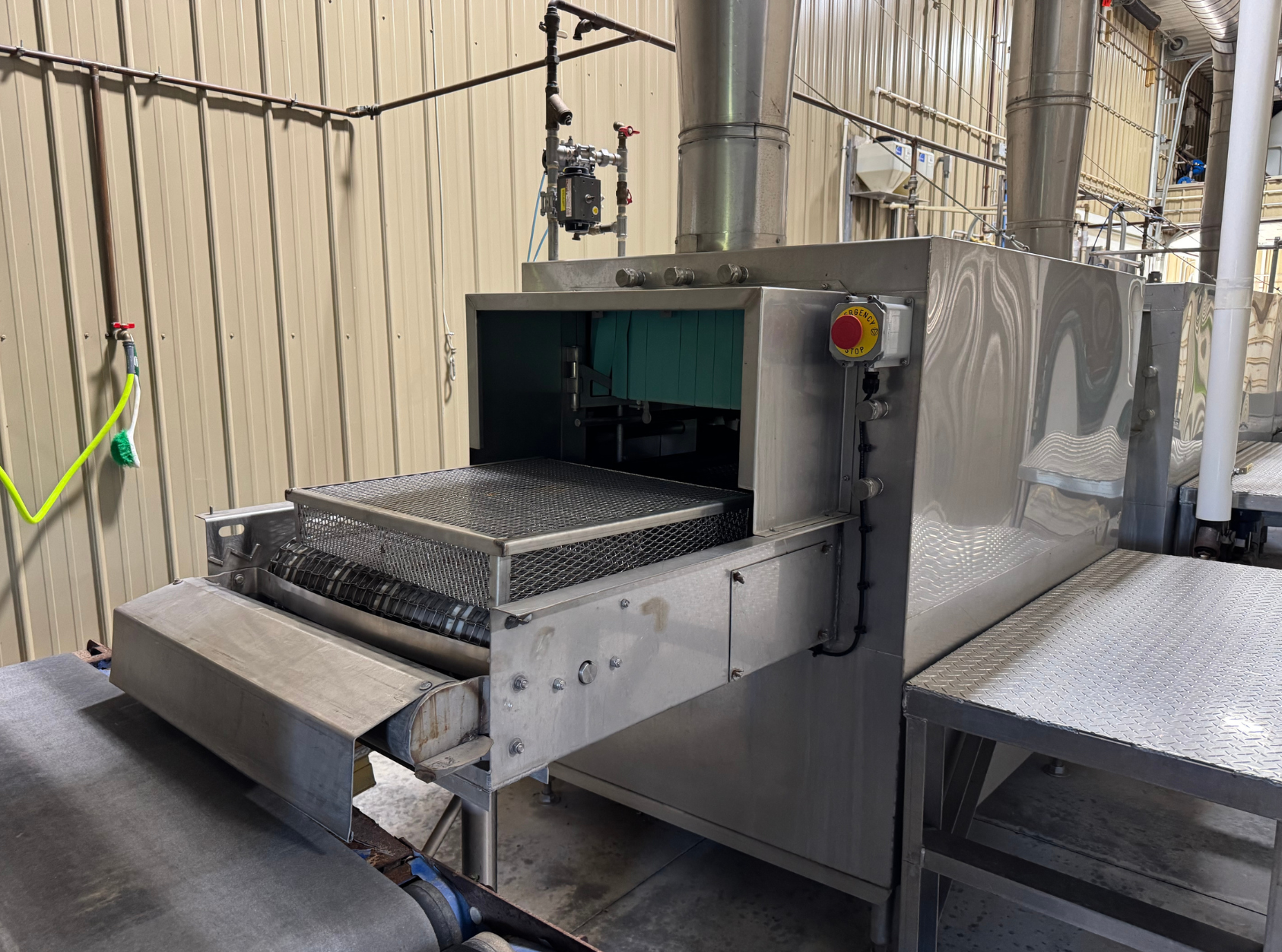 Crates are cleaned using a 4-stage washer. They run through a pre-wash, wash, rinse, and disinfection process at a rate of 600 crates per hour.