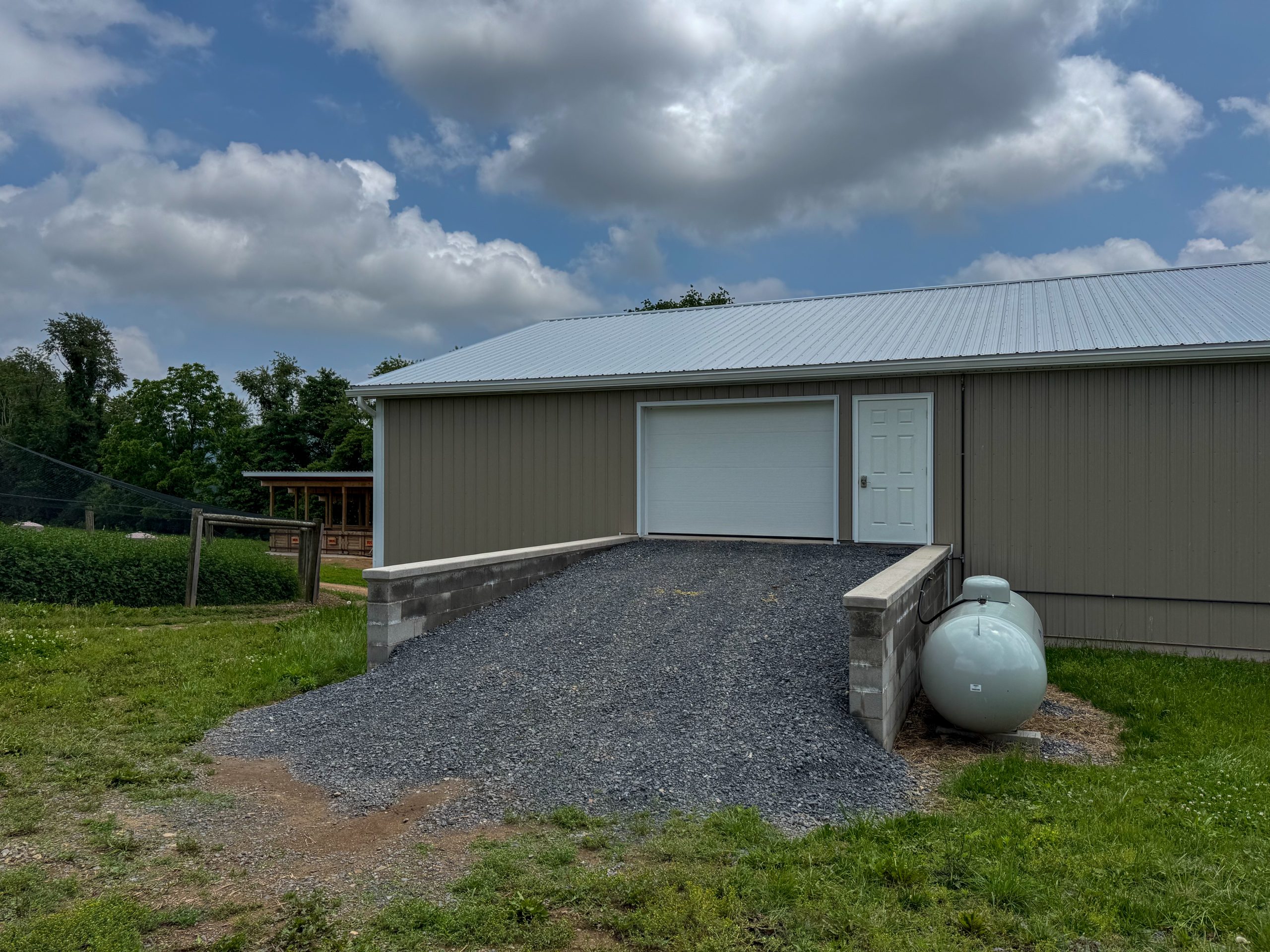 Located on the upper side of the building, a equipment ramp is used to move machines and supplies in and out of the entry building.