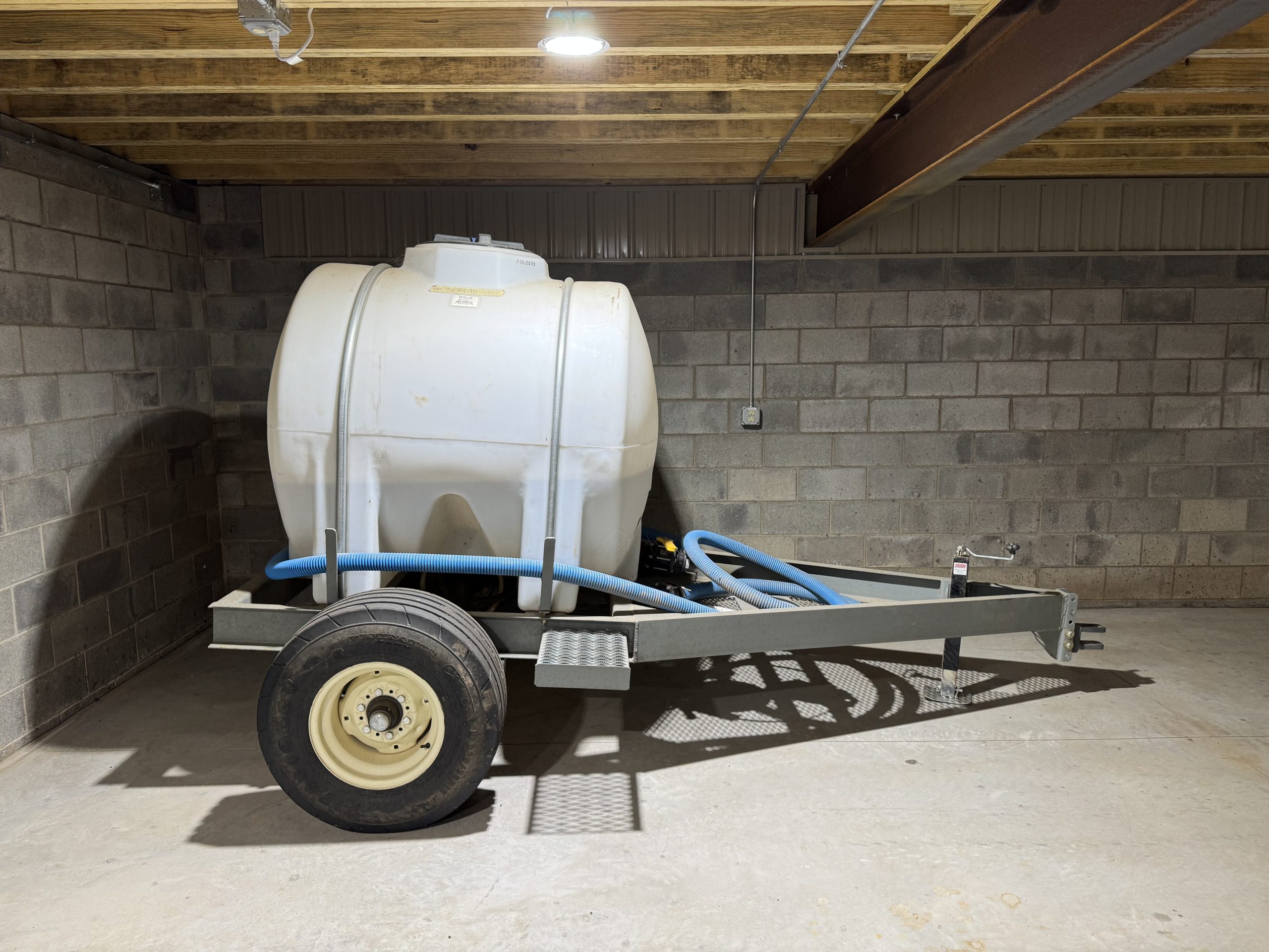 Water carts and tanks are used to transport water throughout the premise. Water is placed inside pans along the edges of the pen to ensure birds have additional sources of water in case they do not drink from the fountains.