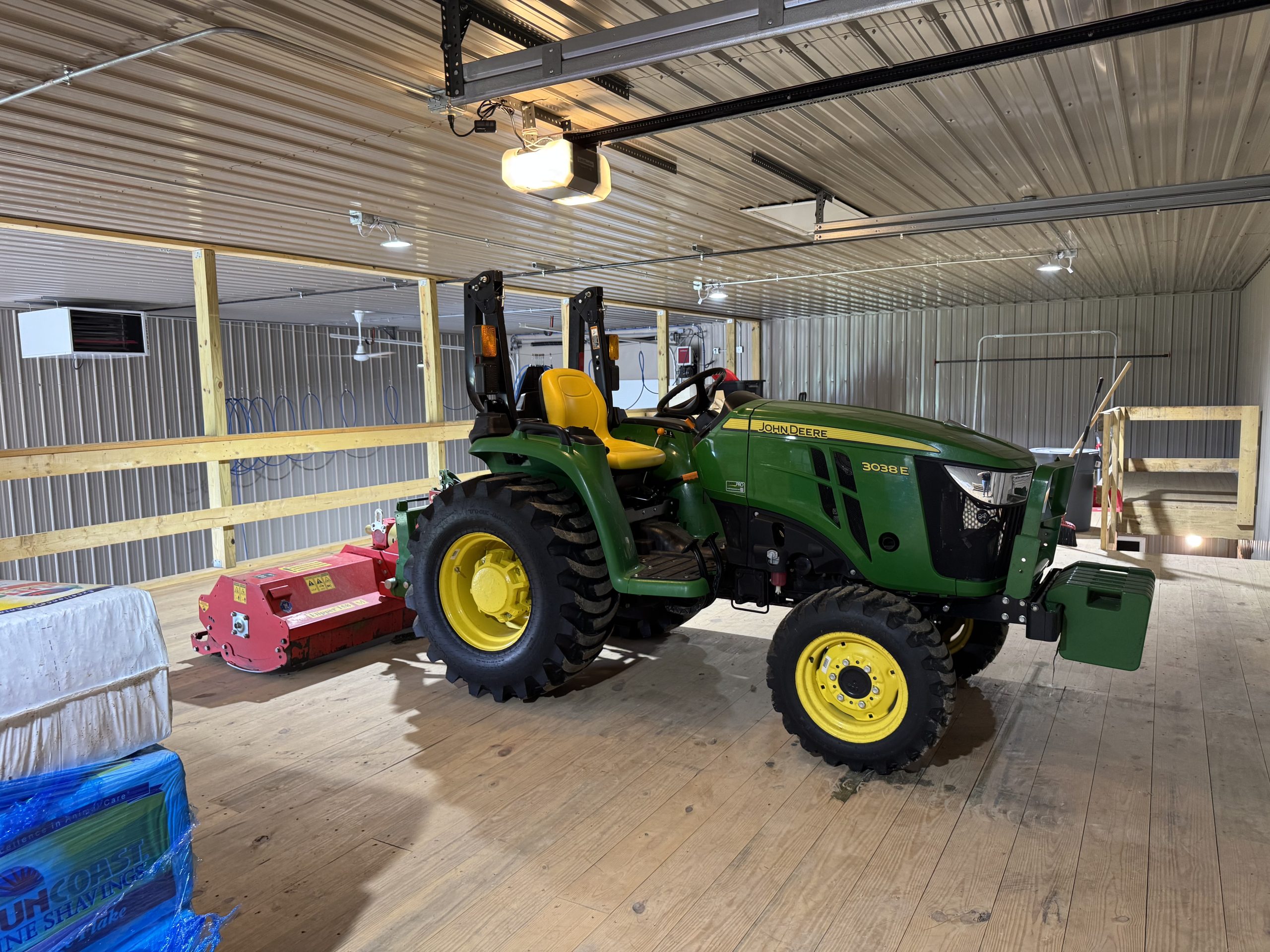 A tractor with a flail mower is kept at each premise entry building to maintain the cover in outside flight pens on that premise.